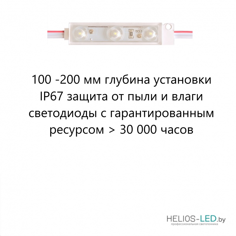 Светодиодный модуль LM-310 предназначен для коробов и букв глубиной от 100 мм и коробов от 120 мм. Корпус из ABS пластика сварен с линзой ультразвуком и обладает влаго- и пыленепроницаемостью в соответствии с IP 67.